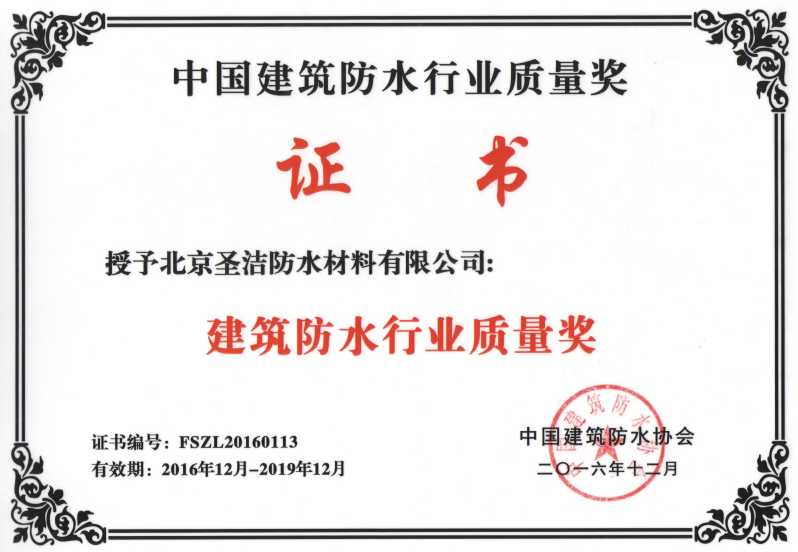 • 中國建筑學會建筑防水學術委員會榮譽證書